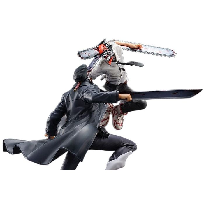 Posing so dynamically and looking ready to leap into action at any moment, Chainsaw Man faces down Samurai Sword, who stands resolute and ready for the attack.