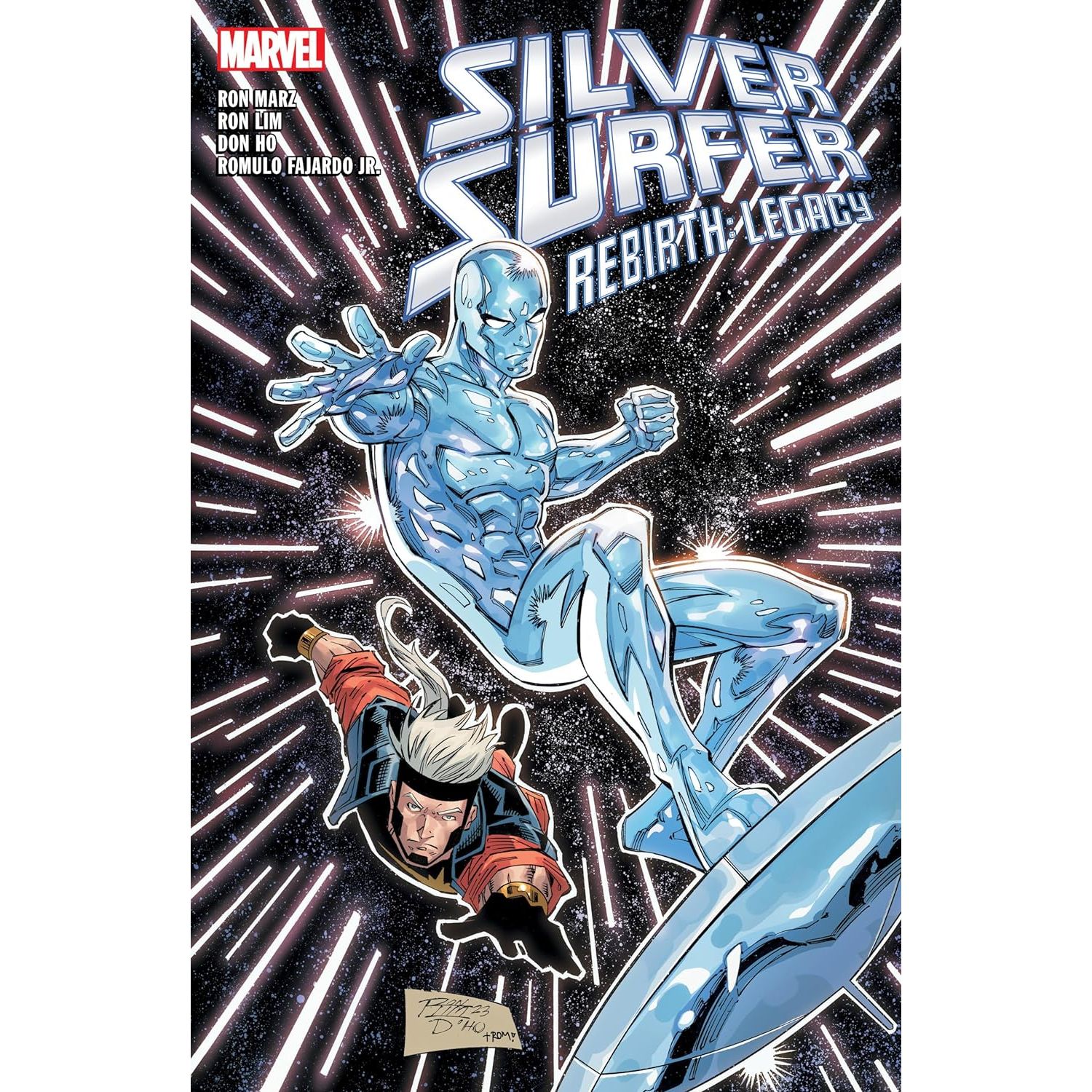 Silver Surfer: Rebirth – Legacy reunites cosmic legend Silver Surfer with beloved characters and iconic threats from across the Marvel Universe in a thrilling new chapter. Written by Ron Marz with stunning artwork by Ron Lim, this volume collects the Silver Surfer Rebirth: Legacy series #1-5.
